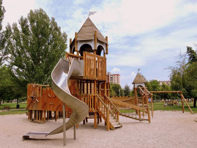 Keywords: playground slide castle swing game park fun wood sky clouds