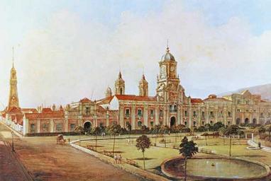 Keywords: Plaza de Armas (Chile).jpg Plaza de Armas de Santiago de Chile http //www portaldearte cl/calendario/1980/agosto htm Siglo XIX J J Kier PD-Chile PD-old Palacio de la Real Audiencia de Santiago Plaza de Armas de Santiago de Chile