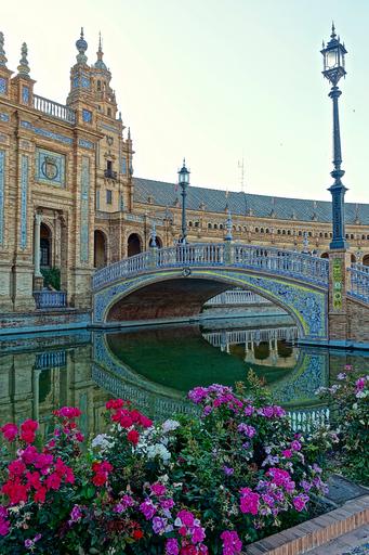 Keywords: plaza de espania palace flowers seville historic famous monument