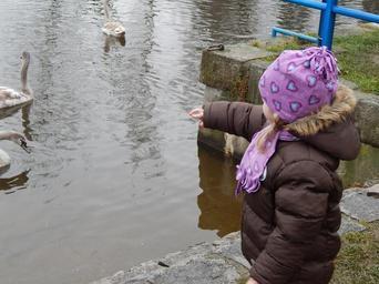 Keywords: pleasure feeding swans child baby girl adelka river