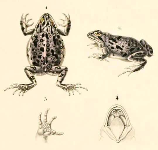 | Keywords: Pleurodema marmoratum 1847.jpg « Leiuperus marmoratus » Pleurodema marmoratum « Leiuperus marmoratus » Pleurodema marmoratum http //archive org/stream/voyagedanslamr91847orbi page/n197/mode/2up Voyage dans l'Amérique méridionale in Alcide Dessalines d'Orbigny 1847 Extracted from Voyage dans l'Amérique méridionale - pl 13 jpg PD-old Pleurodema marmoratum drawing 12 21 16 February 2013 UTC Pleurodema marmoratum 1847 jpg Pleurodema marmoratum Leiuperidae feet Leiuperidae heads Voyage dans l'Amérique méridionale - amphibians |