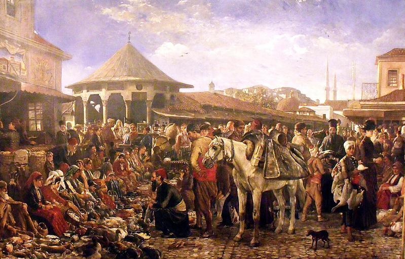 Keywords: Plovdiv Mrkvicka.jpg en A Marketplace in Plovdiv by Ivan Mrkvicka bg Паза в Пловдив от Иван ъ квичка http //www panoramio com/photo/47764081 Ivan Mrkvicka 1856-1938 1888 PD-Art Ivan Mrkvička Paintings in Bulgaria Plovdiv in art