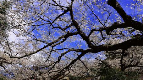 Keywords: plum blossom blue day sky spring flower's background tree section