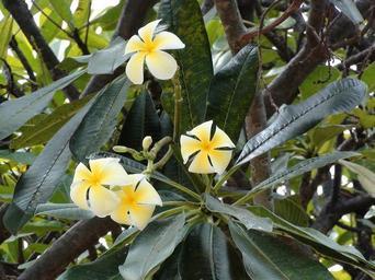 Keywords: plumeria flower tropical nature white yellow hawaii exotic plant natural hawaiian green leaf