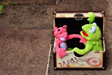 Keywords: plush toys kermit the pink panther toys box chest suitcase fun funny play stuffed animal children fun fig plush frog panther travel go away holiday