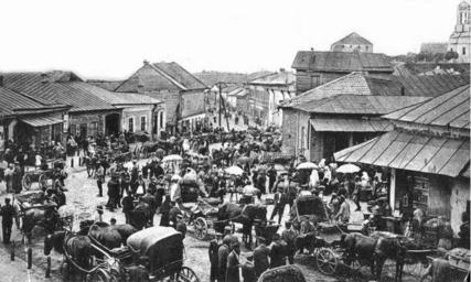 Keywords: Острог. Ринок.png uk Ринок в Ост озі А хів author Кінець ХІХ - поч ХХ ст Postcards of Ostroh Historical images of Ostroh Markets in Ukraine Five-glass landau fiakers PD-Art
