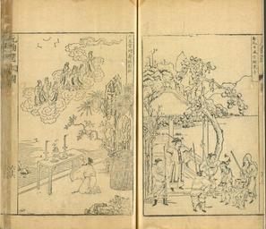 | Keywords: 元曲選圖像二幅.png fr Deux illustrations extraites de Sélection d'arias de la dynastie Yuan en These prints from around 1615 show two figures from Yuan-dynasty 1279-1368 poetry The right-hand picture illustrates a play about Zheng Kongmu a law clerk and Song Bin a young man who accidentally killed a man Zheng recognizes Song Bin as an honorable man and convinces the judge not to execute him Instead he is exiled to a penal colony where he has many adventures including meeting up with and helping Zheng Kongmu when he himself runs afoul of the law by killing a woman who mistreated his children The other picture shows Peng Zu a longtime assistant to a fortuneteller named Zhou and Ren Taohua who can tell fortunes and find ways to change a person's fate The story begins with Widow Shi's anxiety over her son Liuzhu who had gone away as a merchant and not returned Zhou tells the widow that her son will die that very night Taohua confirms the prophecy but says the young man can be saved if his mother says Brother Shi Liuzhu three times at the third watch Liuzhu is saved when he hears his mother s voice calling but Zhou is disturbed to discover that there is a merciful star i e the mother in the picture that he had not seen before and decides to test his own magical powers The story continues with many incidents involving Zhou Peng Zu and Taohua 1615 http //www wdl org/fr/item/2876/ author Custom license marker 2013 01 23 PD-old-100 Yuan Dynasty National Central Library ROC Images from the World Digital Library |