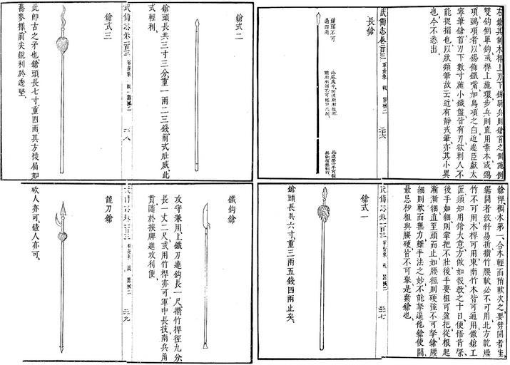 Keywords: 六種明代實用槍.png en Six kinds of spears popular in the Ming dynasty zh 武備志 中記載流行於明代的六種槍 武備志 茅元 1621-MM-DD PD-old-100 Spears in art