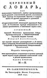 | Keywords: Словарь Алексеева.PNG ru П А Алексеев «Це ковный слова ь или Использования ечений славенских д евних також иноязычных без пе евода положенных в Священном Писании и д угих це ковных книгах» Четвё тое издание вновь пе есмот енное исп авленное и п отиву п ежних т ех изданий весьма знатным количеством слов и ечений п еумноженное; в Санкт-Пете бу ге в типог афии Ивана Глазунова 1818 год; часть 3 1818 https //books google ru/books id YuxOAAAAcAAJ П А Алексеев other versions PD-RusEmpire Russian dictionaries Books from Russia 1818 Title pages from Russia Books published in Saint Petersburg |