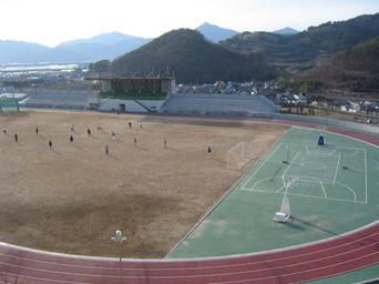 Keywords: PNU Miryang athletic.jpg Soccer game being played on the athletic field at the Miryang campus of Pusan National University Taken by User Visviva 2006-12-18 own assumed Visviva Miryang campus of Pusan National University