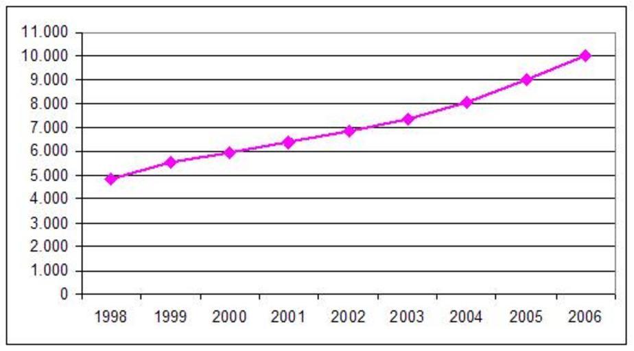 Keywords: Població cunit 1998 - 2006.JPG Evolució de la població de Cunit entre el 1998 fins al 2006 Font IDESCAT Evolución de la población de Cunit entre 1998 hasta 2006 Fuente IDESCAT 2007-02-10 own assumed Borja252 Cunit Demographics of Catalonia
