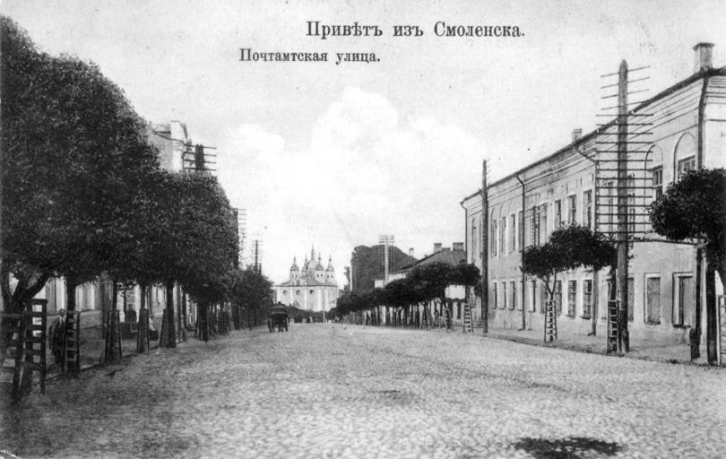 | Keywords: Pochtamtskaya street.jpg  en Pochtamtskaya Street now - Konenkov street in Smolensk ru Почтамтская улица ныне - улица Конёнкова в Смоленске О игинальная отк ытка  е установлены before 1917 года PD-RusEmpire 20th-century postcards of Russia Postcards of Smolensk |