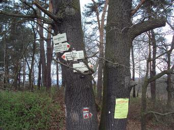 Keywords: Pod Smrtkou.JPG cs Rozcestník u Koňského rybníka katastr Stvolínky own Zákupák 2013-04-20 Hiking and footpath fingerposts in Česká Lípa District Smrtka skála Koňský rybník