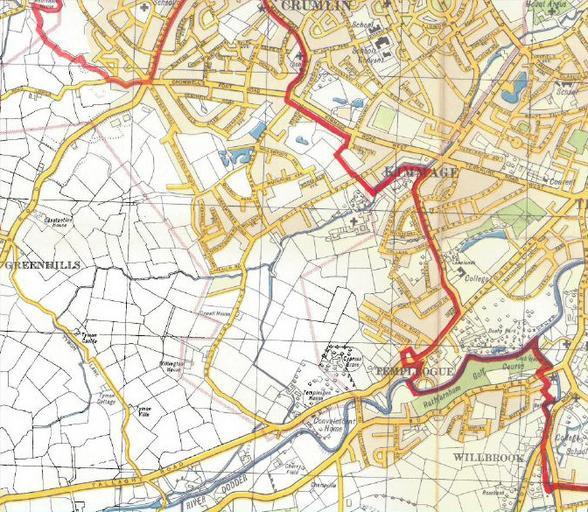 | Keywords: Poddle River from Tymon source, with City Watercourse intake, to Mount Argus and beyond Tongue (inner City Watercourse culverted).jpg Map of area then rural to WSW of Dublin City County Dublin Ireland showing the Poddle River from Tymon River source the City Watercourse intake from the River Dodder and further Dodder with Poddle shown to beyond the Tongue divide at Mount Argus inner City Watercourse not shown as already culverted Also visible on about 30 of map are suburbs remainder rural Ordnance Survey Ireland 1958 Government Copyright expired 50 years max scanned Myself Original map by Ordnance Survey 1958-12-31 Public domain - government copyright 50 years expired in last few years PD-old-50 Cc-zero Maps of Dublin River Poddle |