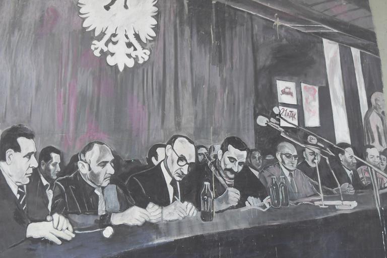 | Keywords: Podpisanie porozumień sierpniowych w Gdańsku - graffiti w Gdańsku.jpg pl Podpisanie porozumień sierpniowych w Gdańsku w sali BHP - mural w Gdańsku na wiadukcie ul Okopowej Osoby w pierwszym rzędzie od lewej 3-ci Mieczysław Jagielski 4-ty Lech Wałęsa 5-ty Tadeusz Fiszbach own Artur Andrzej 2011-03-24 Cc-zero Gdańsk Shipyard Strike of 1980 History of Gdańsk Okopowa Street in Gdańsk Murals in Gdańsk Mieczysław Jagielski Lech Wałęsa Tadeusz Fiszbach 1 Doki Street in Gdańsk | ||||