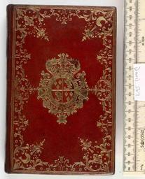 | Keywords: Poesies Sacrees dediees a monseigneur le Dauphin - Upper cover (Davis567).jpg Style Armorial Dentelle Dolphin motif; Caption Upper cover; Colour Red; Edge Gilt exhibition history Decorative Technique Tooled in gold; Cover Material Goatskin includes morocco turkey etc arms of Louis Joseph Dauphin Louis XVI's first son Y Devaux Dix siècles p 195 A similar binding is kept in the Lyons public Library Exposition de reliures p 21 n 90 pl XXI object history Text 1770; Paris; Louis XVI King of France 1754-1793 object type Cc-zero place of creation Binding France place of discovery M M Foot The Henry Davis Gift Vol III London 2010 British Library image http //www bl uk/catalogues/bookbindings/LargeImage aspx RecordId 020-000004262 ImageId ImageId 41736 Copyright BL Poesies Sacrees dediees a monseigneur le Dauphin Uploaded with GWToolset Poesies Sacrees dediees a monseigneur le Dauphin - Upper cover Davis567 http //www webarchive org uk/bldatasets/bindings/6280_4 jpg Bookbinding 18th-century bookbinding |