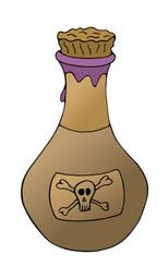 Keywords: poison bottle skull and crossbones cork stopper liquid leaking color brown purple container toxic dangerous potion vial