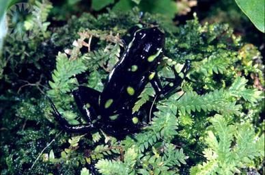 MAKE A MEME View Large Image ...Green spotted poison dart frog found in the jungles of Darien, Panama. Dendrobates Auratus Male carries tadpoles, common in canal zone, Taboga Island and Darien. ..Credit: Carl C. Hansen (Smithsonian Institution) SI Neg. 89-4815. Date: ...