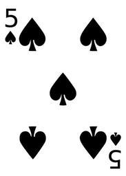 | Keywords: Poker-sm-21A-5s.svg A Playing card five of spades from poker deck in small PNG format Poker-sm-21A-5s png 2009-06-23 12 53 UTC Poker-sm-21A-5s png Xiong derivative work Nevetsjc <span class signature-talk >talk</span> GFDL-self PD </nowiki> Uploaded with derivativeFX Individual playing cards 5 of Spades SVG playing cards |