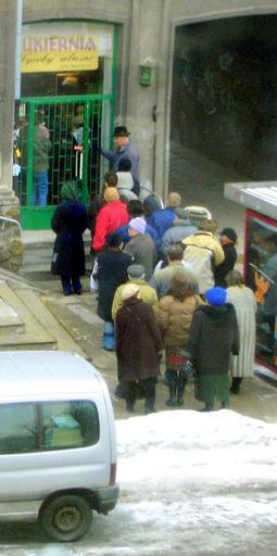 | Keywords: Poland Fat Thursday queue.jpg Kolejka przed cukiernią w pl Tłusty czwartek A queue in front of a sweets' bakery in Poland on en Fat Thursday en wiki http //en wikipedia org/wiki/Image Fat_Thursday jpg 2007-02-15 Kpalion en English Wikipedia Kpalion Fat Thursday in Poland Queues in Poland |