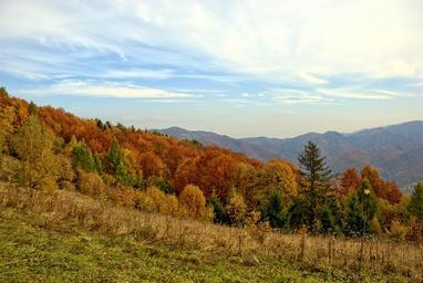 Keywords: poland pieniny autumn the sun colors foliage holiday landscape mountains nature green trail forest tree view tourism sunny travel the horizon peace of mind the silence blue sky sky colorful