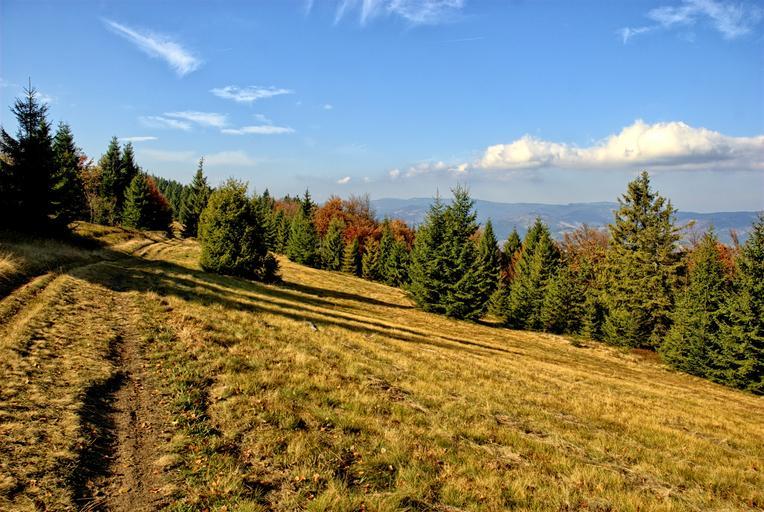 Keywords: poland pieniny autumn the sun colors foliage holiday landscape mountains nature green trail forest tree view tourism sunny travel the horizon peace of mind the silence blue sky sky colorful