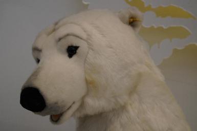 Keywords: polar bear bear white animal predator teddy stuffed animal head portrait face expression toys child children soft toy teddy bear steiff stiff museum museum giengen at the hot imitation fake replica button in ear purry