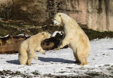 Keywords: polar bear play fight predator young nuremberg dangerous snow winter tiergarten