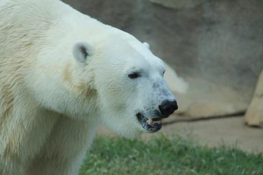 Keywords: polar bear white teeth ears eyes face cold ice zoo fur big mammal power arctic