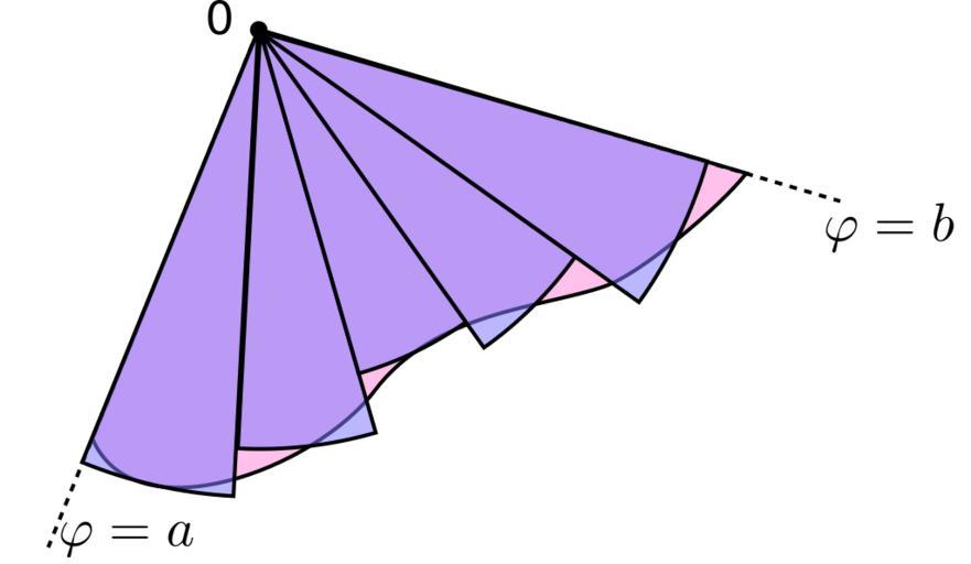 Keywords: Polar coordinates integration Riemann sum.svg Approximating the region depicted in Image Polar coordinates integration region svg by five sectors Own work created using Inkscape 2007-02-16 Jitse Niesen Polar coordinate system