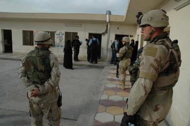 | Keywords: Police Deliver Message Of Peace DVIDS12996.jpg en Iraqi Policemen and Soldiers from the 108th Military Police Company 16th MP Brigade Fort Bragg N C prepare to hand out supplies to local Iraqi schoolchildren during a humanitarian aid mission Nov 20 2005 in Baghdad U S Army photo by Pfc Matthew Clifton released 2005-11-20 https //www dvidshub net/image/12996 12996 2005-12-05 16 55 BAGHDAD IQ PD-USGov Fort Bragg Images from DoD uploaded by Fæ | ||||