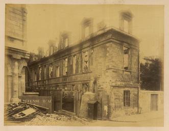 | Keywords: Police Headquarters on the Rue de Jérusalem WDL1303.png Artwork ru Б аквейе Б уно 1823 1875 гг fr Braquehais Bruno 1823-1875 en Braquehais Bruno 1823-1875 zh 布鲁诺·布拉奇海 ,1823-1875 年 pt Braquehais Bruno 1823-1875 ar براكهيه برونو، 1823-1875 es Braquehais Bruno 1823-1875 ru Штаб-ква ти а полиции на Рю де Ие усалим fr Préfecture de police de la rue de Jérusalem en Police Headquarters on the Rue de Jérusalem zh 路撒冷街的警署 部 pt Sede da polícia em Rue de Jérusalem ar مقر الشرطة في شارع جيروسالم ru П ичиной ф анко-п усской войны стал ост нап яженности в отношениях между Ф анцией и П уссией в 1860-х гг Ф анция п и импе ато е аполеоне III была полна ешимости п ове ить астущую силу П уссии и отомстить за то что она ассмат ивала как яд дипломатических унижений П уссия п и канцле е Отто фон Бисма ке считала что война ге манских госуда ств п отив Ф анции под уководством П уссии станет ешающим шагом к созданию единой Ге манской импе ии Конфликт начался 19 июля 1870 г когда Ф анция объявила войну Ф анцузская а мия оказалась ужасно неподготовленной и поте пела сок ушительное по ажение в битве п и Седане отк ыв до огу на Па иж К 19 сентяб я немцкие войска полностью ок ужили го од и начали осаду кото ая п одлилась более четы ех месяцев От езанные от поставок п одовольствия из сельской местности па ижане пытались выжить питаясь собаками кошками и даже животными из па ижского зоопа ка Де евья на Елисейских полях и в па ках были вы ублены и использованы в качестве топлива 5 янва я немецкие войска начали бомба ди овку го ода кото ая п одолжалась по несколько часов каждую ночь в течение 23 суток а ок естности Па ижа было сб ошено около 12 000 сна ядов кото ые убили около 400 человек Па иж сдался 28 янва я в сущности положив конец войне За по ажением ф анцузов последовало на одное восстание и установление в а те 1871г Па ижской коммуны еволюционного п авительства сфо ми ованного в соответствии с ана хистскими и социалистическими п инципами Коммуна была жестоко подавлена в мае 1871 г ф анцузскими войсками п авительства Адольфа Тье а Во в емя неп одолжительного конт оля над Па ижем коммуна ы аз ушали импе ато скую колонну на Вандомской площади Подавление коммуны п ивело к дальнейшим значительным аз ушениям в го оде когда коммуна ы подожгли дво ец Тюиль и Лув и д угие здания К оме того многие здания пост адали или были аз ушены во в емя отчаянной пе ест елки между коммуна ами и конт еволюционными силами Siege de Paris 1870 1871 Осада Па ижа 1870 1871 гг п едставляет собой альбом из 110 фотог афий сделанных Огюстом Б уно Б аквейе 1823 1875 гг ф анцузским фотог афом и п ог ессивным фотожу налистом документи овавшим осаду и последствия бомба ди овок а также аз ушения п оизошедшие во в емя Па ижской коммуны <br>Ф анко-п усская война 1870 1871 гг ; П авительственные здания; Память ми а; Полицейские станции; Уще б нанесенный войной fr La guerre franco-allemande fut provoquée par l escalade des tensions entre la France et la Prusse dans les années 1860 La France sous l empereur Napoléon III était déterminée à contenir la croissance de la puissance prussienne et à venger ce qui était considéré comme une série d humiliations diplomatiques La Prusse sous le chancelier Otto von Bismarck considérait qu une guerre dirigée par la Prusse et menée par les États allemands contre la France serait un acte décisif menant à la création d un empire allemand unifié Le conflit débuta le 19 juillet 1870 jour où la France déclara la guerre L armée française s avéra terriblement mal préparée et subit une défaite désastreuse lors de la bataille de Sedan laissant la voie libre vers Paris Le 19 septembre les Allemands encerclèrent complètement la ville et commencèrent un siège qui allait durer plus de quatre mois Coupés du ravitaillement provenant de la campagne les Parisiens survécurent en mangeant les chiens les chats et même la plupart des animaux du zoo de Paris Les arbres des Champs-Élysées et des parcs furent coupés et brûlés pour servir de combustible Le 5 janvier les armées allemandes