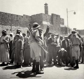 | Keywords: Police round up and search at Jaffa Gate. LC-DIG-ppmsca-17416-00175.jpg Jerusalem en Police round up and search at Jaffa Gate Sept 9 LC-DIG-ppmsca-17416-00175 digital file from original on page 91 no 2181A Information field Notes Arrangement Photographs arranged chronologically LOT title from album Most of the photographs were taken by John D Whiting G Eric Matson and others may have also taken some of the photographs Matson Whiting Hanna Safieh Joseph H Giries and others contributed to the work of the Matson Photo Service the successor to the American Colony Photo Department 1898-1940 For more information about the American Colony Photo Department and the Matson Photo Service see http //hdl loc gov/loc pnp/pp matpc For more information about the John D Whiting Collection see http //www loc gov/rr/print/coll/629_whiting html Album has parchment vellum bound cover Handwritten on spine Diary in Photos Vol IV 1938 Whiting Album unpaginated album page numbers supplied by Library staff Pages 1 3-4 109-109 are blank Captions for photographs found in list Diary in photos Vol IV June 30 to December 31 1938 included with album Some additional caption information found in Film catalogue No 1 1934-1938 Copy in John D Whiting Supplementary Archive Box 2 John D Whiting's diaries correspondence and other materials are located in the Library of Congress Manuscript Division Papers of John D Whiting Forms part of Visual materials from the papers of John D Whiting Library of Congress Transfer; LC Manuscript Division; 2006; DLC/PP-2006 051 43 html http //memory loc gov/phpdata/pageturner php type contactminor cmIMG1 /pnp/ppmsca/17400/17416/00175t gif agg ppmsca item 17416 caption 175 LC-DIG-ppmsca-17416-00175 LOC-image ppmsca 17416 Whiting John D John David 1882-1951 photographer Matson G Eric GÀstgifvar Eric 1888-1977 photographer 1938-09-09 PD-Matson Historical images of Jaffa gate Diary in photos vol IV 1938 ppmsca 17416 1938 in Jerusalem |