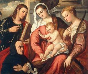 | Keywords: Polidoro de Renzi Polidoro da Lanciano - Maria mit Kind, Johannes dem Evangelisten, der Heiligen Katharina von Alexandrien und einem Stifter.jpg Artwork Polidoro de Renzi Polidoro da Lanciano a k a Polidoro da Lanciano or Polidoro Veneziano c 1515-1565 creator Polidoro de Renzi Polidoro da Lanciano de Maria mit Kind Johannes dem Evangelisten der Heiligen Katharina von Alexandrien und einem Stifter Virgen con el Niño Santa Catalina de Alejandría san Juan Evangelista y un donante 16th century oil canvas 83 × 101 cm formerly Santa Maria dei Servi Venice http //www kunst-fuer-alle de/deutsch/kunst/kuenstler/kunstdruck/polidoro-da-lanciano/20424/2/135669/maria-mit-kind -johannes-dem-evangelisten -der-heiligen-katharina-von-alexandrien-und-einem-stifter/index htm www kunst-fuer-alle de Inv No 214 Other versions PD-old-100 Polidoro de Renzi Polidoro da Lanciano oil paintings of people Renaissance paintings of Madonna and Child Paintings of Madonna and Child 16th-century paintings of Saint Catherine of Alexandria 16th-century oil on canvas paintings in Italy 16th-century donor portraits with Madonna Men with books in art 16th-century paintings location missing Images from kunst-fuer-alle de Paintings with inscribed scrolls Uploads by Mattes from external sources |
