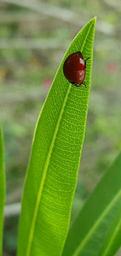 Keywords: polished lady beetle lady beetle ladybug bug beetle insect flying insect oleander leaf leaf red ladybird small close up biology entomology cycloneda munda