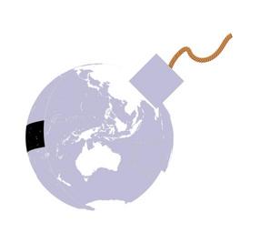 Keywords: political politics world earth map 3d globe explode bomb fuse lit hopeless