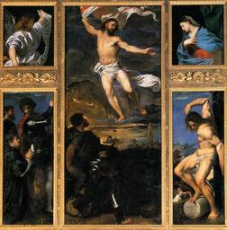 | Keywords: Polittico averoldi 01.jpg Artwork Q3907473 Creator Titian The Resurrection of Jesus Christ <br> alternate title <br> between 1520 1522 Oil on canvas size cm 278 252 Institution Santi Nazaro e Celso Brescia object history credit line accession number WGA link 22781 http //www wga hu/art/t/tiziano/02_1520s/1resurr jpg http //www wga hu/html/t/tiziano/02_1520s/1resurr html painting religious Italian 1501-1550 PD-old-100 WGA form painting WGA type religious WGA School Italian WGA time period 1501-1550 Averoldi polyptych 02 |