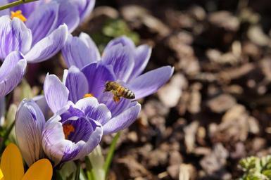 Keywords: pollen bee collect pollen pollination crocus spring panties bühen close insect flight collecting flight macro collect sprinkle movement bloom