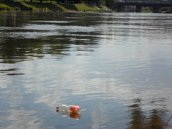 Keywords: pollution garbage thrown away waste disposed of environment bottle plastic plastic waste water river danube