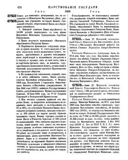 | Keywords: Polnoe sobranie zakonov Rossijskoj imperii - Sobranie 2 Т 44 otd 1 nr 47251 - p 676 - 1869 AD.jpg  en Complete Collection of Laws of the Russian Empire Vol 2 Т 44 nr 47251 - page 676 1869 AD ru Полное соб ание законов Российской Импе ии Соб ание Вто ое Т 44 отделение 1 ст аница 676 47251 1869 год be Поўны збо законаў Расійскай імпе ыі Збо д угі Т 44 аддзяленне 1 ста онка 676 47251 1869 год http //www runivers ru/lib/book3136/9954/ - free digital library Russian imperial office 1873 public domain free Об изъятии  огилевской губе нии из ведения Главного Уп авления Севе о-Западным к аем литовские губе нии бело усские губе нии Севе о-Западный к ай Паўночна-Заходні к ай літоўскія губе ні бела ускія губе ні  ихаил  иколаевич  у авьев Виленское гене ал-губе нато ство виленский гене ал-губе нато  іхаіл  ікалаевіч  у аўёў Віленскае гене ал-губе ната ства віленскі гене ал-губе нато  огилевская губе ния  олигёвская губе ния  агілёўская губе ня PD-old Northwestern Krai Mahilioŭ Governorate |
