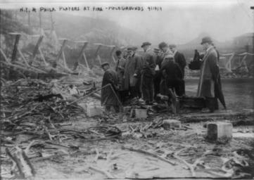 | Keywords: Polo Grounds Fire.jpg en New York Giants and Philadelphia Phillies players at site of fire - Polo Grounds NYC April 14 1911 Library of Congress Prints and Photographs Division LC-USZ62-80748 b w film copy neg http //www loc gov/index html Library Of Congress 1911-04-14 PD-US LOC-image cph 3b47623 PD-Bain Polo Grounds New York Giants baseball New York Giants baseball players |