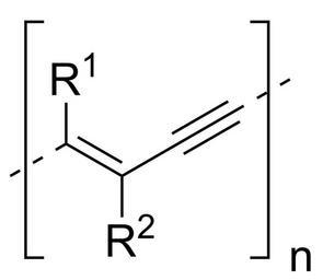 Keywords: Polydiacetylene.svg Generic chemical structure of a polydiacetylene Own 19 16 14 February 2011 UTC Ed Edgar181 Organic polymers Alkynes