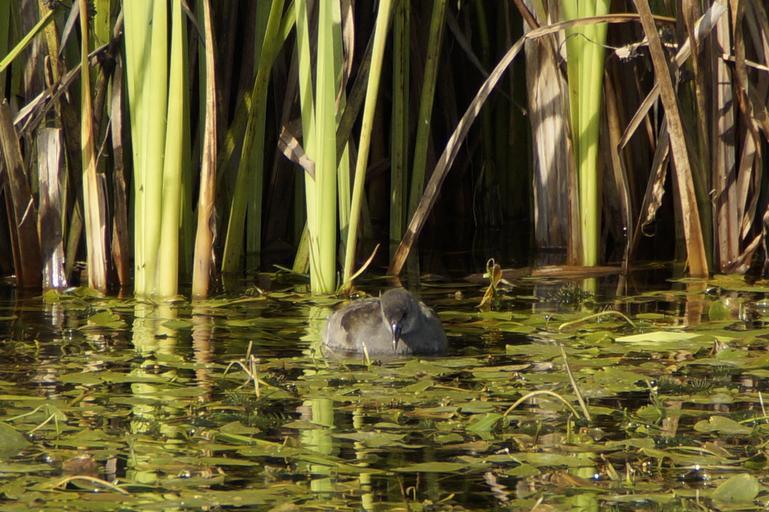 Keywords: pond chicks bird reed swim duck water common moorhen moorhen young bird