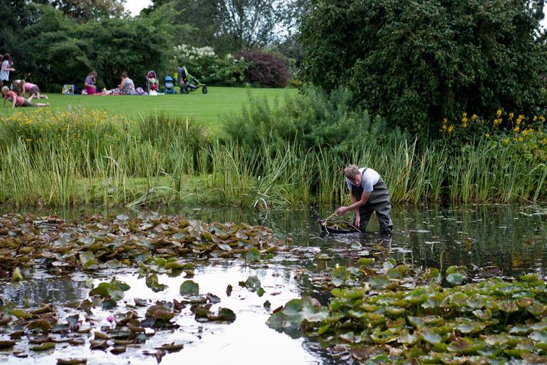 Keywords: pond clearing man waders lawn hyde hall essex uk