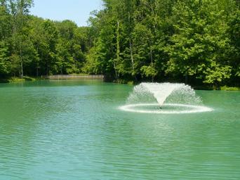 Keywords: pond fountain water nature park outdoor landscape green tree sunny peaceful bridge scenic scenery countryside beautiful landscapes environment summer sunlight view sun