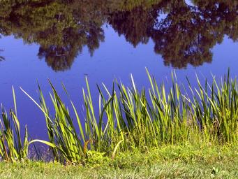 Keywords: pond lake weeds sky reflection trees water natural outdoor forest environment riverbank riverside aquatic ecosystem freshwater swamp scenery day