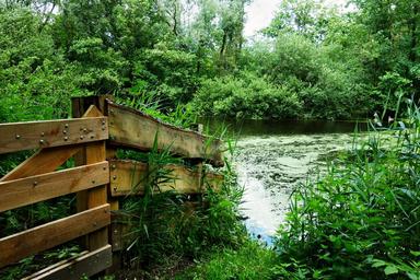 Keywords: pond pool park green lush nature tranquil peaceful scenic landscape trees foliage duckweed