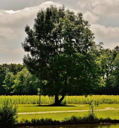 Keywords: pond waters landscape trees summer sun blue sky clouds