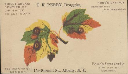 | Keywords: leaves hygiene cosmetics & soap cosmeticssoap pharmacists drugstores patent medicines patentmedicines dental hygiene dentalhygiene victorian tradecards victoriantradecards miami university libraries miamiuniversitylibraries muohio digital collections muohiodigitalcollections Persistent URL: digital.lib.muohio.edu/u?/tradecards,3035 Subject (TGM): Leaves; Hygiene; Cosmetics & soap; Pharmacists; Drugstores; Patent medicines; Dental hygiene; Persistent URL: digital.lib.muohio.edu/u?/tradecards,3035 Subject (TGM): Leaves; Hygiene; Cosmetics & soap; Pharmacists; Drugstores; Patent medicines; Dental hygiene; |