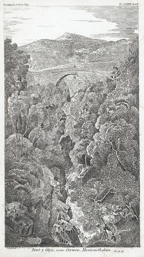 | Keywords: Pont y Glyn, near Corwen, Merionethshire.jpeg Abstract View of bridge and waterfall People in foreground mountains in background Size mm 227 112 exhibition history Institution National Library of Wales Technique print etching bw object history object type PD-old-70-1923 place of creation place of discovery 1130842 Pont y Glyn near Corwen Merionethshire Uploaded with GWToolset Pont y Glyn near Corwen Merionethshire http //dams llgc org uk/behaviour/llgc-id 1130842/fedora-bdef image/reference Images uploaded as part of NLW - WMUK collaboration Welsh Landscape Collection Corwen 1810s Waterfalls in Wales in art Bridges in art Bridges in Wales |